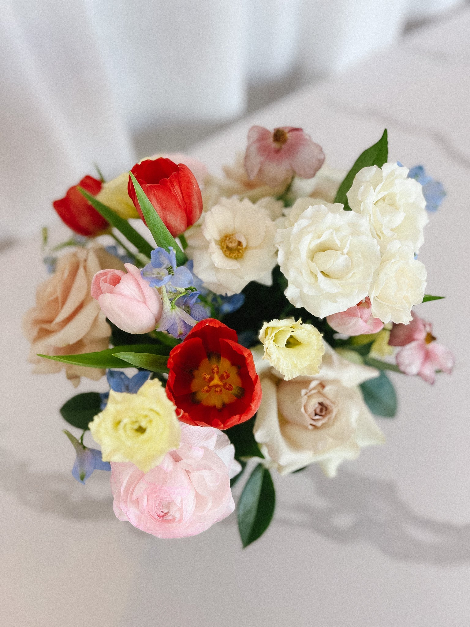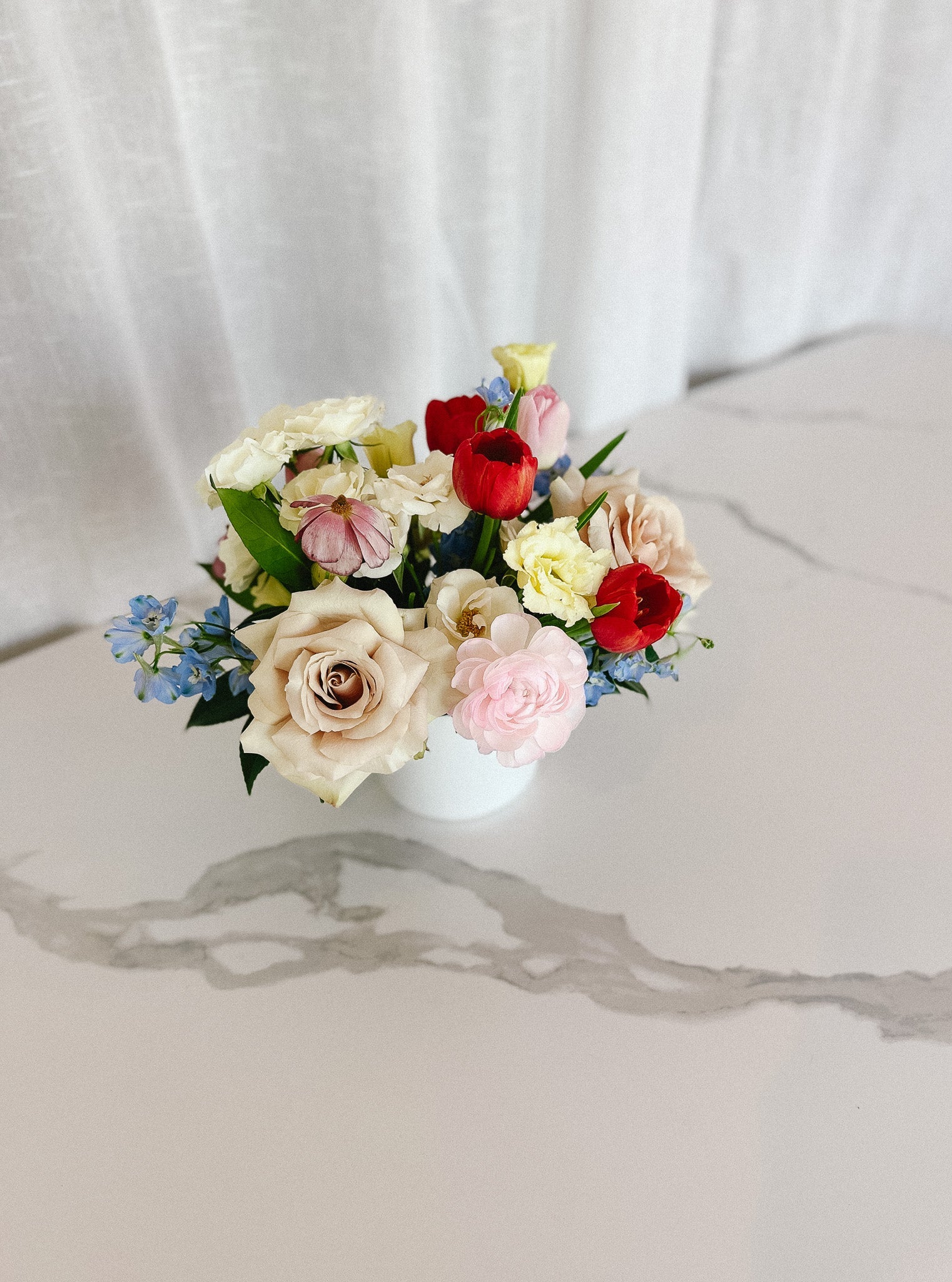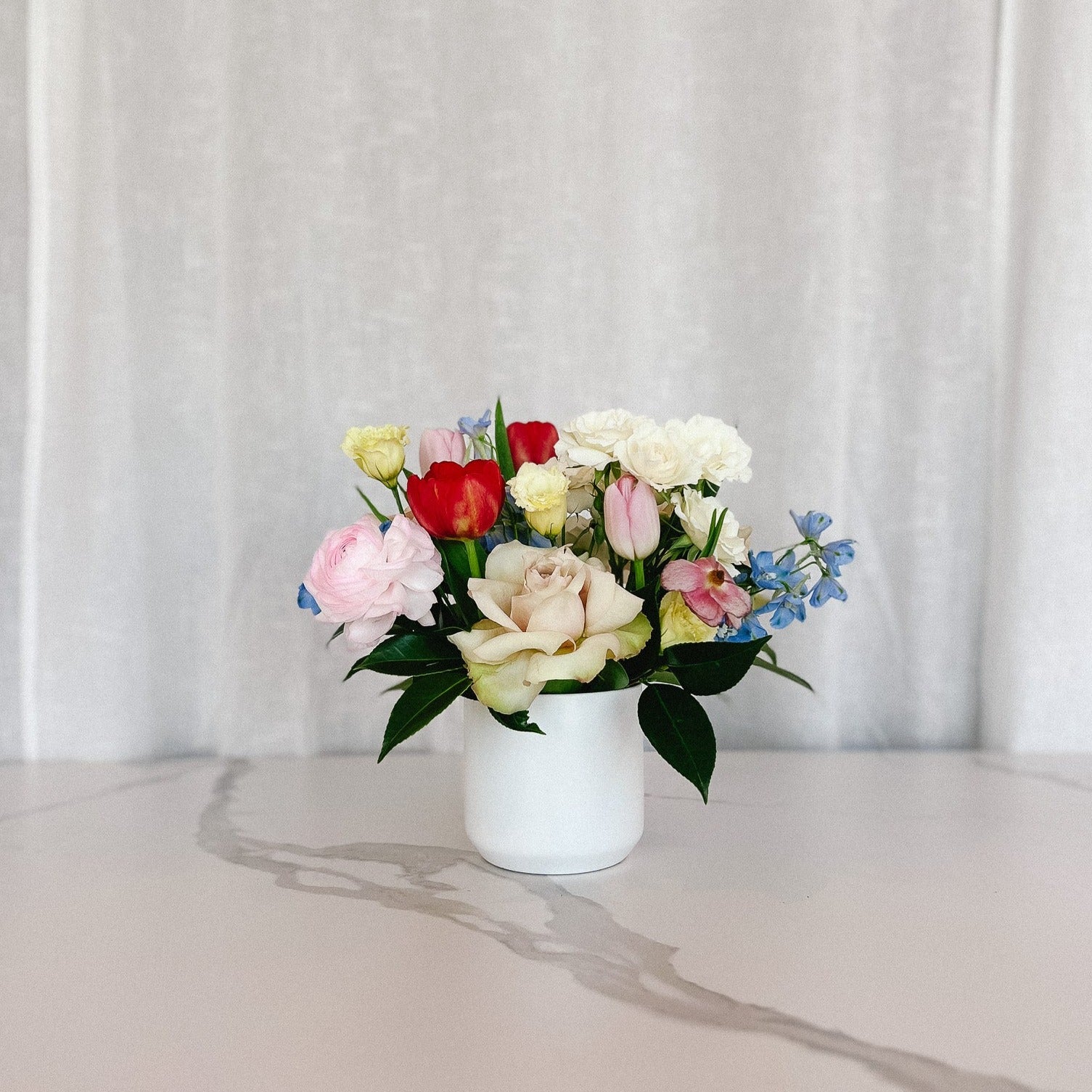 French Braids is a fresh and fun flower arrangement made up of a blend of nature's most sweetest varieties. Featuring a soft and bright spring color palette, French Braids lights up any area you put it in.