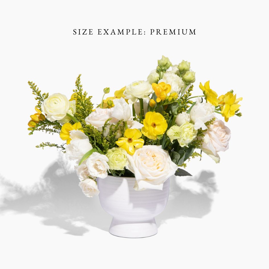 - Premium: When you want a little more than just our standard arrangement. A good size for a centerpiece on a dining table.
