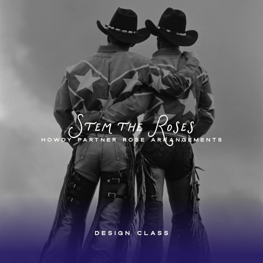 In Stem the Roses, partners will share the reins and design one rose-forward arrangement together. Inspired by western romance and desert skies, this class focuses on how to make a big statement without saying much at all. Using a variety of overwhelmingly beautiful roses and other blooms, you and your partner will work side by side, like biscuits and gravy.