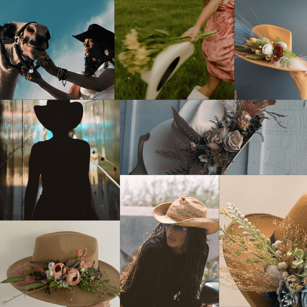 In Horse Girl Energy, we’ll create floral accessories designed to be worn on cowboy hats. Using a mix of dried and fresh elements, textured greenery, and sculptural blooms, this class focuses on wearable floral design. How to work with scale, movement, and attachment so your piece feels like a considered piece, not a costume. Western inspiration, filtered through a design-forward lens.