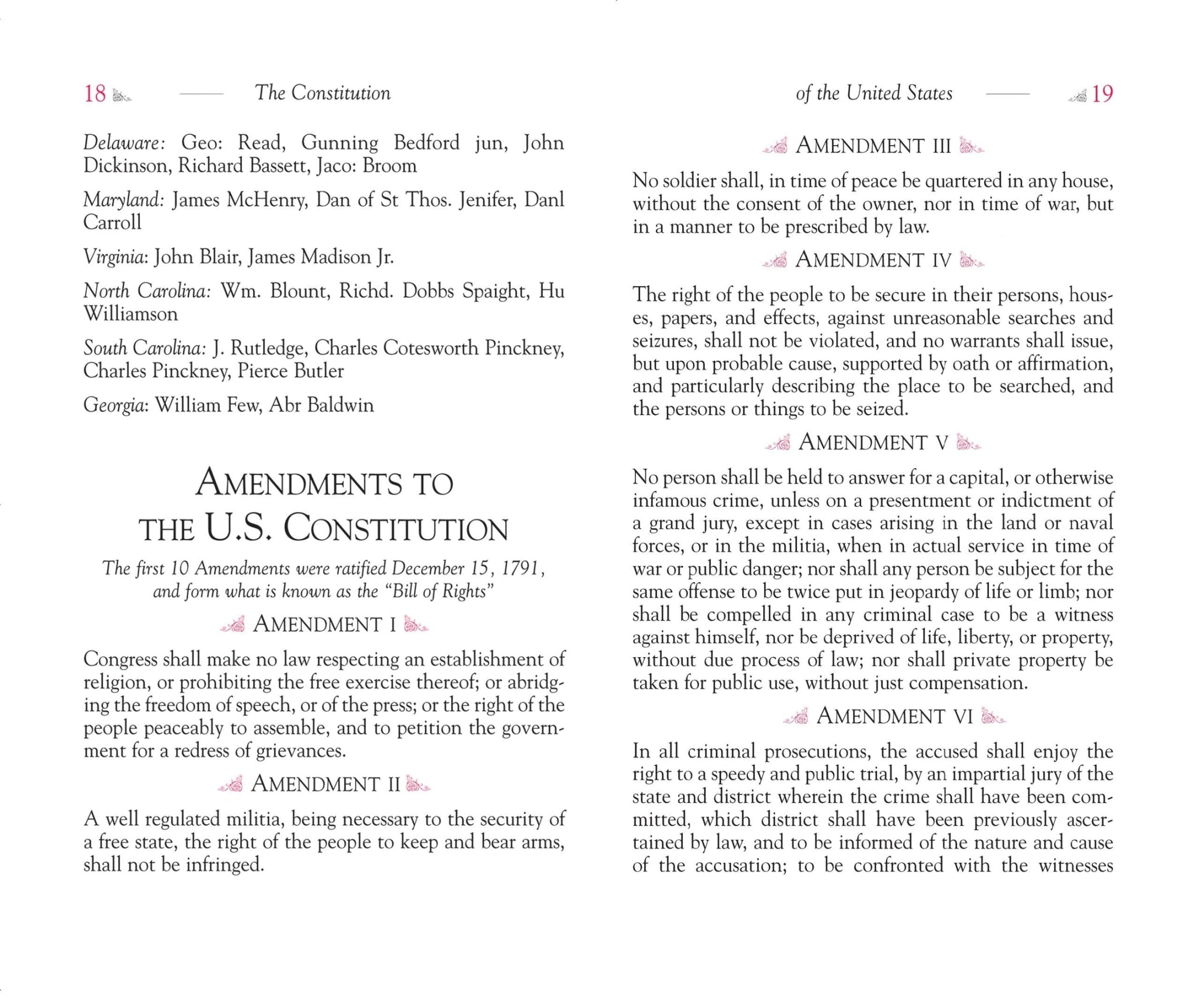 The landmark legal document of the United States, the U.S. Constitution, comprises the primary law of the Federal Government. Signed by the members of the Constitutional Convention in Philadelphia on September 17, 1787, the Constitution outlines the powers and responsibilities of the three chief branches of the Federal Government, as well as the basic rights of the citizens of the United States. This beautiful gift edition contains the complete text of the United States Constitution, including all its amendments. It is a treasure for Americans of all ages. Hardcover | 4.25 X 6.75 | 36 pages