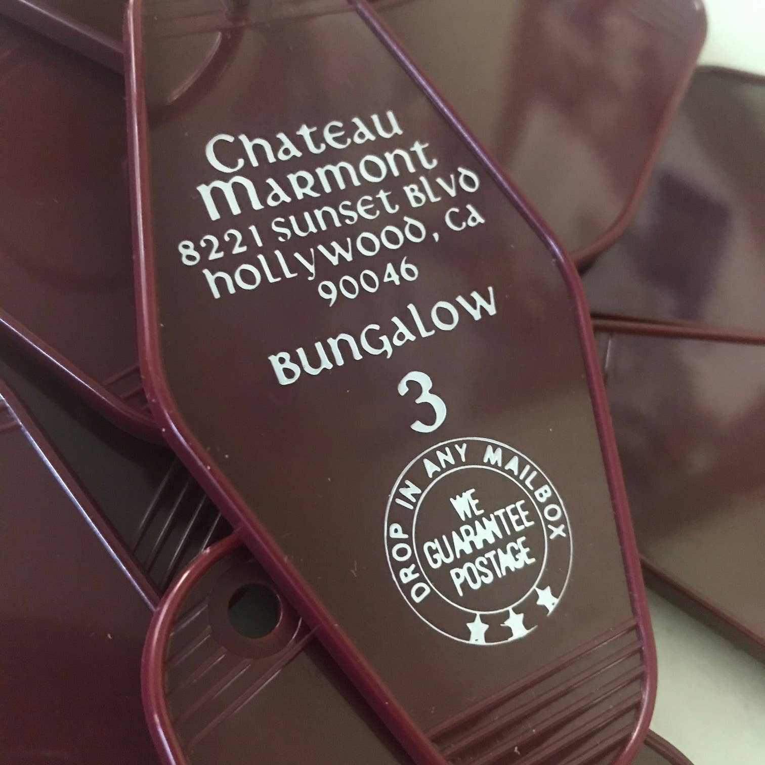 Vintage style motel key fobs, complete with 32 mm slip ring, featuring the key to Belushi's bungalow
