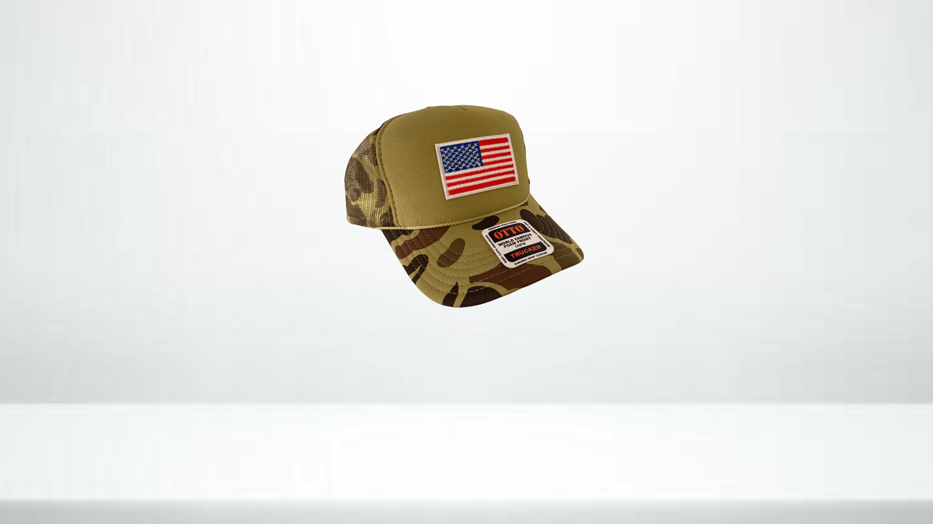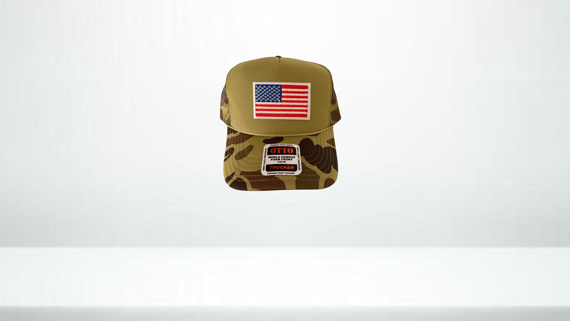 Rep the red, white, and blue wherever you go. This trucker hat features a bold American Flag patch on a premium foam front with breathable mesh back. With 22 hat colors to choose from and an adjustable snapback fit, it’s a classic look built for everyday wear—on the course, at the cookout, or anywhere in between.