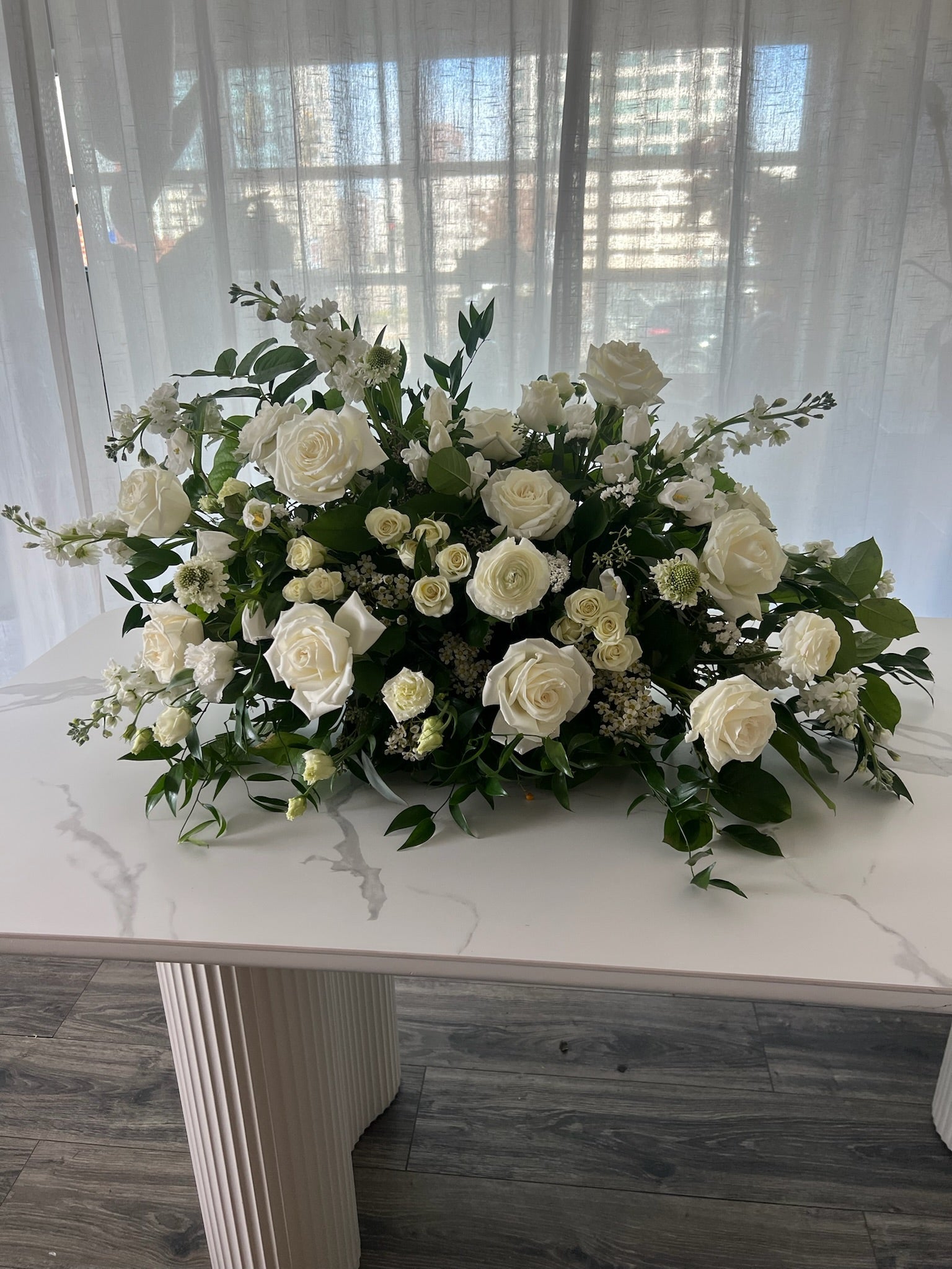 - Full: Our full casket spray. This spray will cover 1/2 to 3/4 of the casket depending on casket size